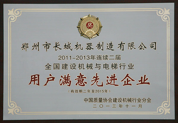 用戶滿意先進(jìn)企業(yè)證書